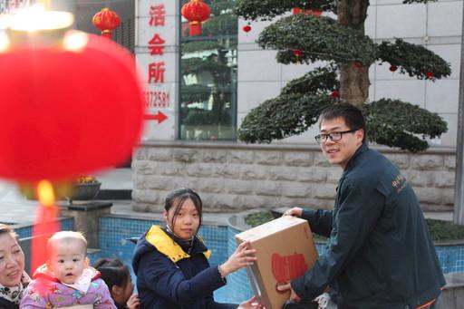 1月23日不到7點,湖北省黃石市郵政速遞物流分公司團(tuán)城山攬投部的攬投員李敏就已經(jīng)出班投遞前一日因客戶原因未妥投的郵件。據(jù)了解,團(tuán)城山攬投部一共有6名攬投員,春節(jié)旺季人均日投遞量近300件,已經(jīng)趕上去年“雙11”的峰值。為了讓客戶及時收到郵件,攬投員們提前出班,晚上還要進(jìn)行小夜班投遞,在繁忙的郵路上迎接春節(jié)的到來。圖為李敏在張燈結(jié)彩的小區(qū)里投遞郵件。 □汪林莉 攝影報道