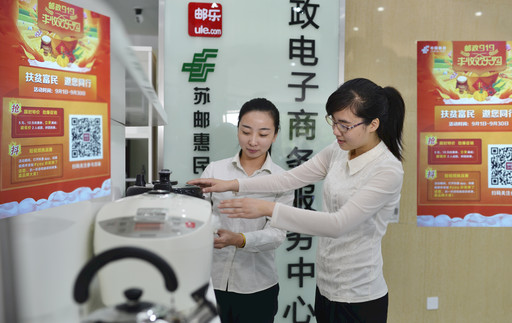 8月31日,江蘇省徐州市郵政分公司啟動(dòng)“919電商節(jié)”活動(dòng),與本地多家農(nóng)產(chǎn)品企業(yè)密切合作,依托郵政自身的電商平臺(tái)“蘇郵惠民”“徐郵微信”、郵樂購和線下的“郵掌柜”站點(diǎn)等渠道優(yōu)勢(shì),推廣農(nóng)特產(chǎn)品。此外,今年的“919電商節(jié)”,該分公司還增加了為小家電商品提供從上線、庫存管理、打包、發(fā)貨、售后等“一條龍”服務(wù)。圖為豐縣郵政分公司的郵樂購站點(diǎn)將小家電商品上柜?! 鮿⒘⒚?nbsp; 陳海彬 攝影報(bào)道