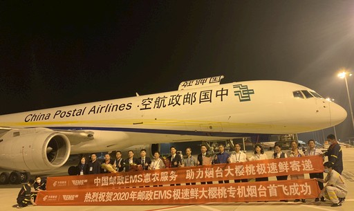 6月2日23:20,一架載有24噸優(yōu)質(zhì)煙臺(tái)大櫻桃的中國(guó)郵政航空公司B757貨運(yùn)專機(jī)從蓬萊國(guó)際機(jī)場(chǎng)起飛,80分鐘后抵達(dá)南京,全國(guó)各地的買家可在24小時(shí)內(nèi)品嘗到新鮮美味的煙臺(tái)大櫻桃。這拉開了2020年郵政極速鮮大櫻桃寄遞首飛直航的序幕。