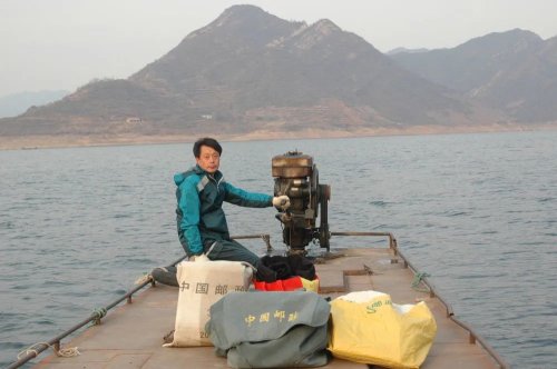 “這里既是庫區(qū),又是山區(qū)。送快遞,談何容易?”劉保朝說。這條郵路幾乎半為高山半為水,獨(dú)石溝鄉(xiāng)的1000多居民散落在環(huán)庫區(qū)4萬畝水面周圍的大小溝岔中。有的山溝幾里長(zhǎng),只住一戶人家。每天送信,劉保朝既要騎自行車,又要駕船行一半水路,還得步行爬山。