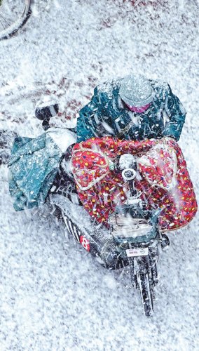 中國郵政集團有限公司天大郵電支局郵遞員冒雪為訂戶送報紙。馮平攝(人民視覺)