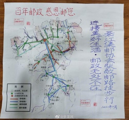 52歲的張敬,是重慶一名集郵愛好者。2021年冬天,他耗時一個多月,徒步走完重慶綦江近2000里的郵路,并“打卡”當(dāng)?shù)?1個郵政所和主題郵局。1月13日,張敬接受記者采訪時稱,他崇拜“馬班郵路”上的王順友,也想親身體驗一把鄉(xiāng)村郵遞員的辛苦。2021年10月28日至12月26日,他開啟“環(huán)綦郵路”徒步行。一個背包、一袋干糧、一瓶礦泉水,他背著行囊平均每天徒步二三十公里。
