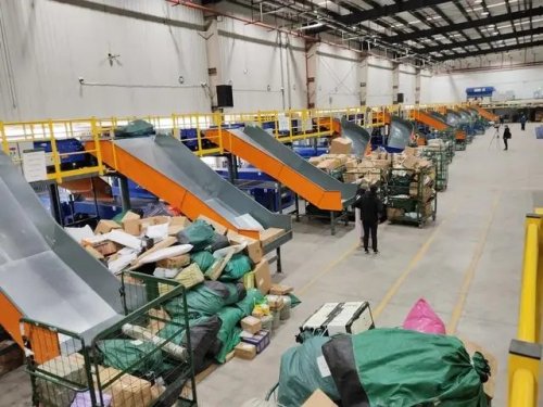 隨著一輛輛卡車到站??吭诙饪谔帲瑏碜愿鞯氐泥]件通過傳送帶進(jìn)入省際進(jìn)口郵件處理中心,粗分、拆包、小件掃描、裝籠,工人們圍繞著各個(gè)分揀線開始緊張有序的郵件分揀作業(yè)。