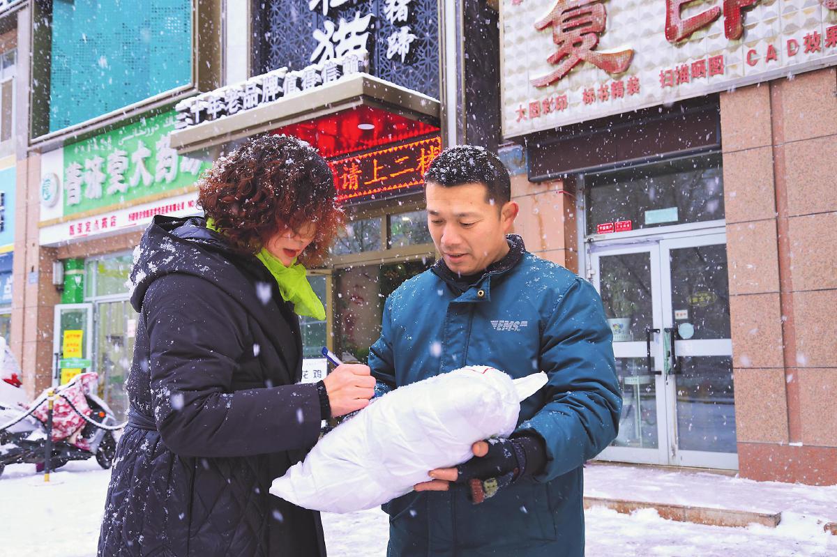 近日,新疆維吾爾自治區(qū)巴音郭楞蒙古自治州迎來了入冬后的第一場大雪。受暴雪極端天氣影響,氣溫驟降且道路濕滑難行,給快遞運輸、投遞都帶來較大阻礙。為了讓客戶盡早收到快遞,巴州郵政分公司攬投員頂著紛飛的雪花,迎著刺骨的寒風,比平時更早出班投遞。他們送件的手是冰涼的,但是送出的快件溫暖著每一位客戶。“下這么大雪還以為你們會晚點送呢,沒想到這么快就收到了?!笨蛻魪埮繉︵]政服務(wù)稱贊不已。