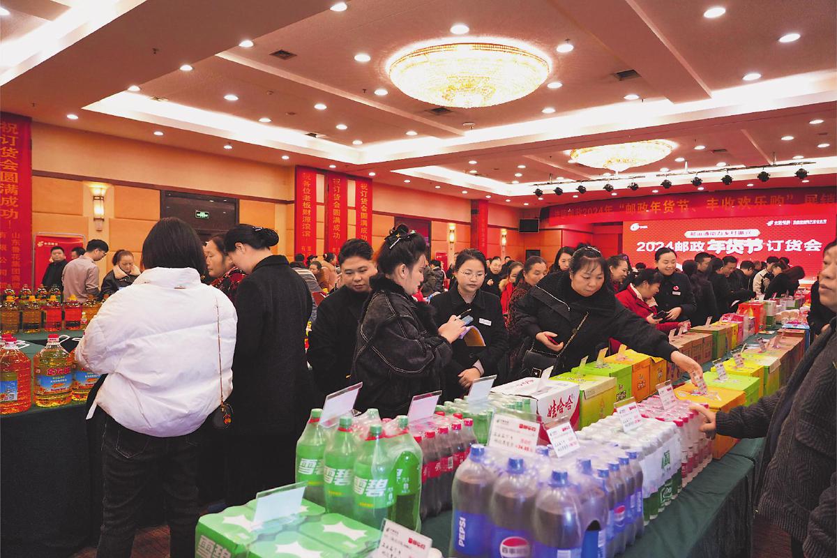 重慶涪陵郵政舉辦年貨展銷會,眾多“郵掌柜”到場采購?! 醴吨緷z
