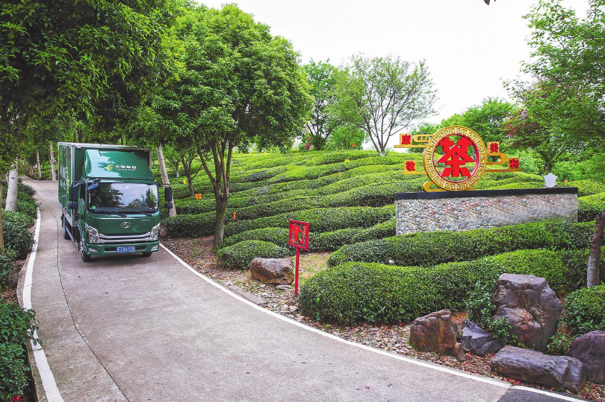 郵車駛?cè)搿班]樂農(nóng)品”黃山茶語基地?!跣炖住z