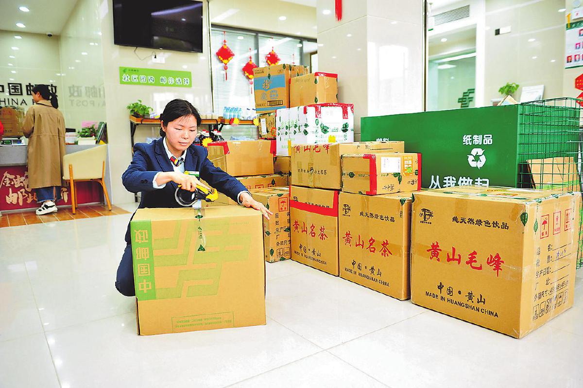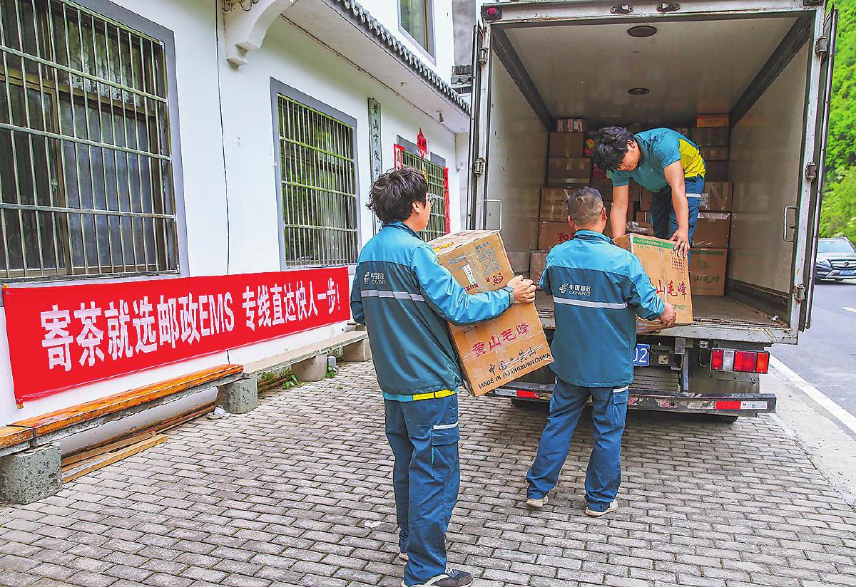 郵政員工深入制茶企業(yè),上門收寄徽茶郵件?!跣炖住z