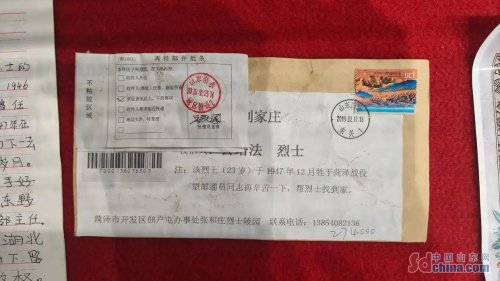 這是一封尋找烈士家屬的信件?!斑@封信的主人是公培法烈士?!蓖醭蓤F(tuán)回憶道,“我們投遞了三天,一直沒投遞下去,地址是建國前的地址,按照規(guī)定我們可以退回去,但這是一封烈士的信,是一封不同尋常的信?!闭沁@份責(zé)任感,讓他踏上了為烈士尋親的漫漫征程。