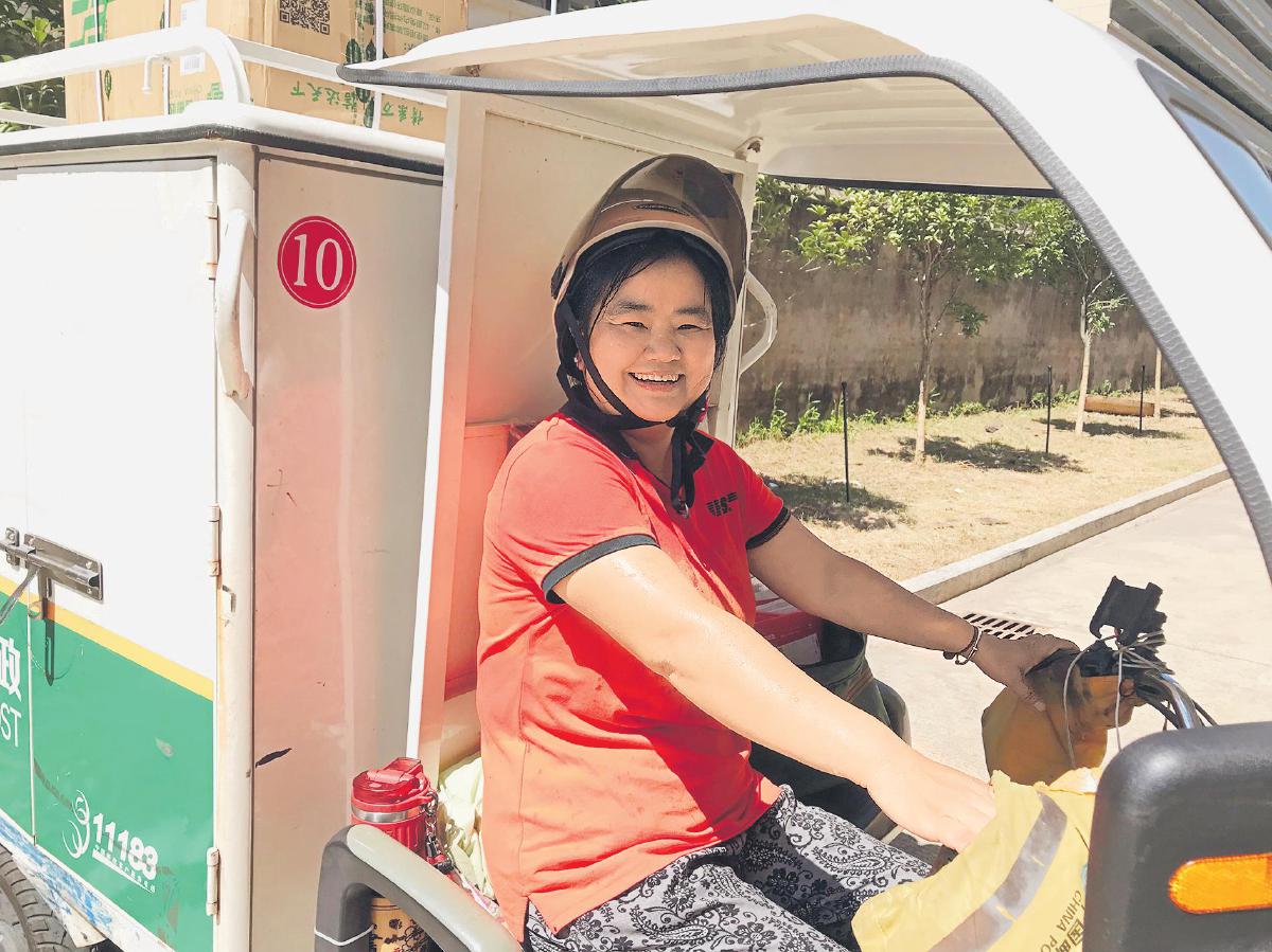 江西省泰和縣郵政分公司投遞員頂著烈日行進在投遞路上。