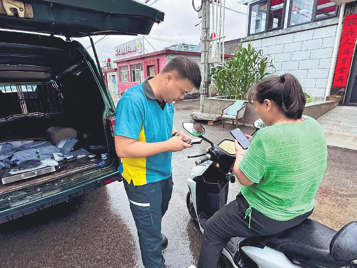 暴雨剛停,北京郵政的投遞員就開車進(jìn)村,及時為村民投遞郵件。 □丁強(qiáng) 攝