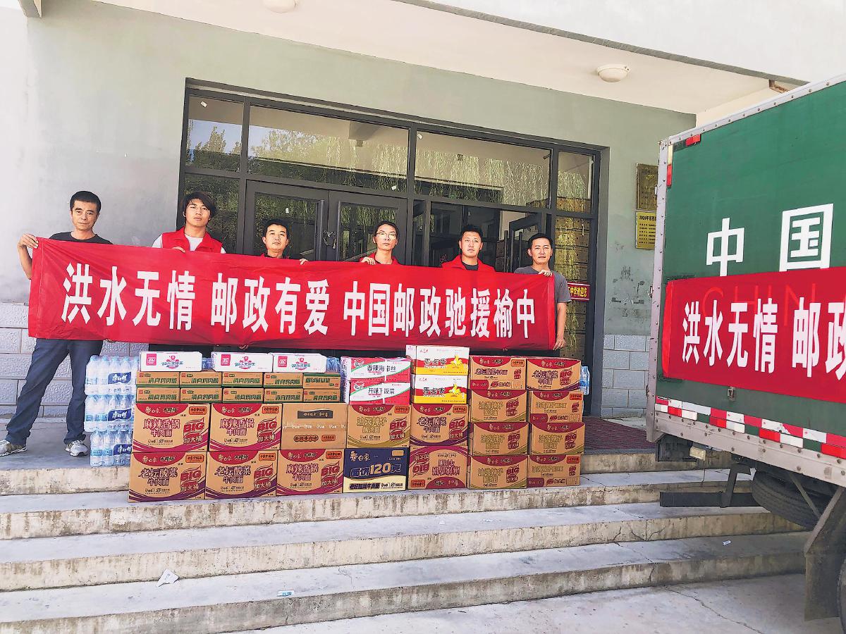 房屋被沖毀、道路被沖斷,但寄遞服務(wù)不中斷、金融服務(wù)不中斷、為人民服務(wù)的情懷不中斷。8月10日,榆中縣分公司第一時間在高崖鎮(zhèn)榆中三中安置點設(shè)置臨時郵局,提供快遞收發(fā)、公益食品發(fā)放、書報刊贈閱等服務(wù)。