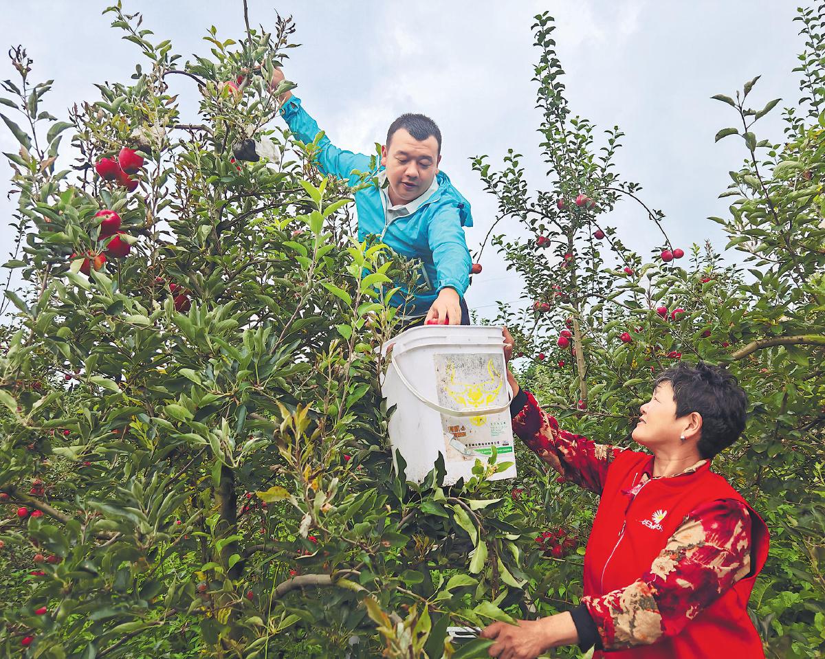 8月20日,云南省曲靖市馬龍區(qū)郵政分公司工作人員來(lái)到當(dāng)?shù)毓麍@,和果農(nóng)一起采摘蘋果,為訂單發(fā)貨做準(zhǔn)備。進(jìn)入蘋果采摘季以來(lái),馬龍郵政通過(guò)郵樂(lè)網(wǎng)直播帶貨、線下展銷等方式幫助果農(nóng)拓展銷路,日訂單峰值突破3000件。同時(shí),郵政工作人員駐點(diǎn)合作果園,全程參與選果,還采用為寄遞蘋果量身定制的包裝材料,讓消費(fèi)者品嘗到完好無(wú)損的鮮果。