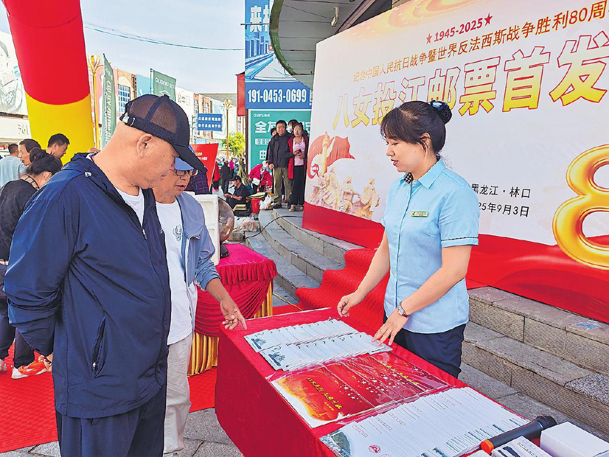 “八女投江”英雄事跡發(fā)生地——黑龍江省林口縣隆重舉行抗戰(zhàn)勝利80周年紀(jì)念郵票發(fā)行儀式,向舍生取義的巾幗英雄致敬?!醪苡詈健z影報(bào)道