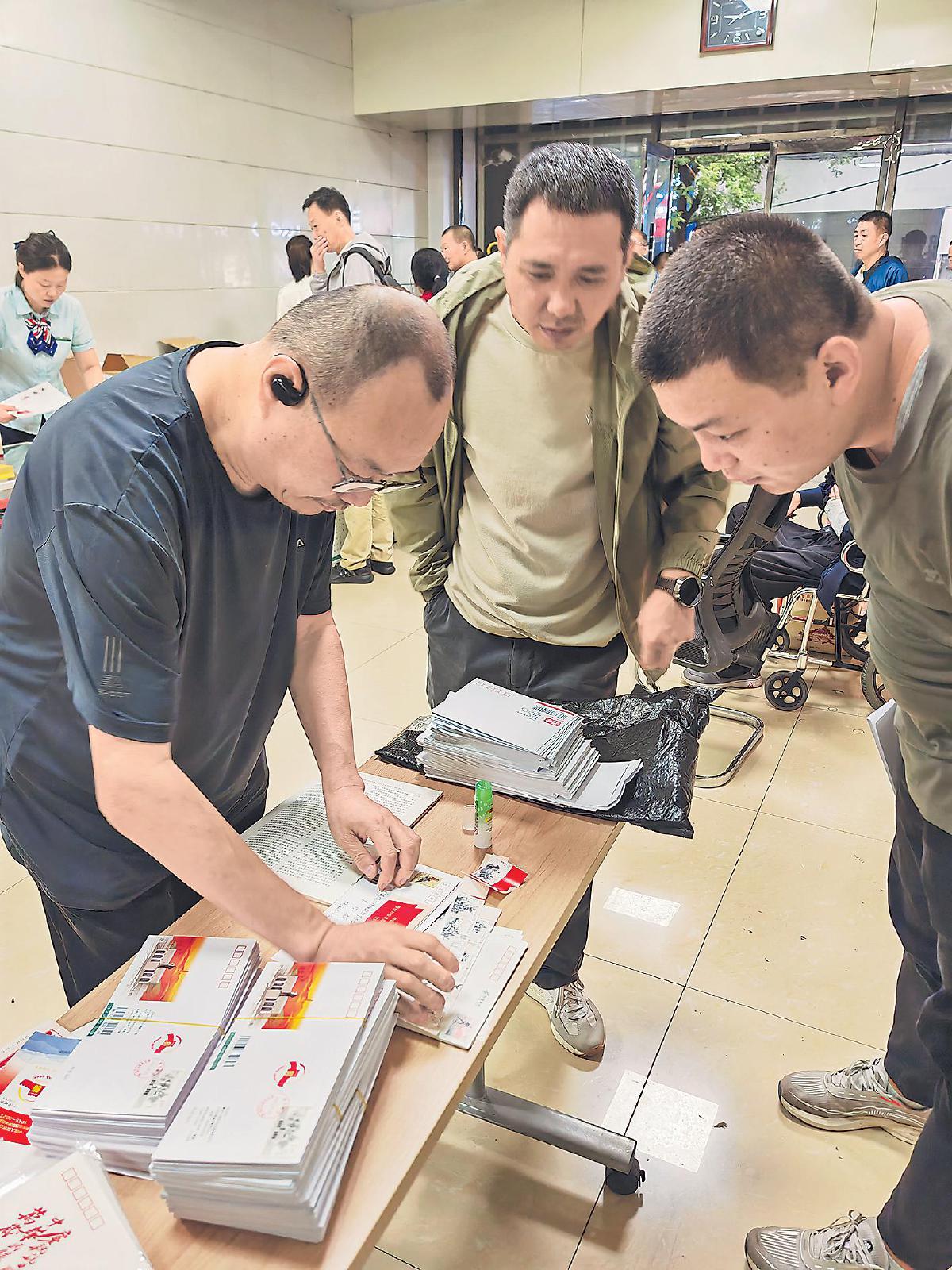 在云南省騰沖縣滇西抗戰(zhàn)紀(jì)念館的發(fā)行活動(dòng)現(xiàn)場(chǎng),集郵愛好者涌向臨時(shí)設(shè)立的郵政服務(wù)臺(tái)前,排隊(duì)購(gòu)買紀(jì)念郵票及其配套郵品。郵政工作人員現(xiàn)場(chǎng)為郵迷提供蓋戳和郵寄服務(wù),滿足大家的收藏與分享需求?! 鯒钊镦獭↑S金金 攝影報(bào)道