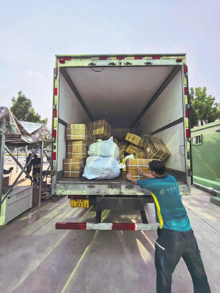 在郵件投遞和收寄環(huán)節(jié),北京郵政嚴(yán)格執(zhí)行工作規(guī)范。這是工作人員熟練地將包裹裝上郵車。