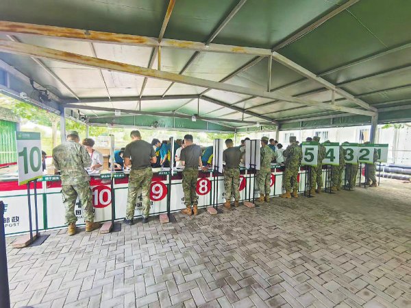 在臨時服務(wù)網(wǎng)點,官兵們用郵秩序井然。