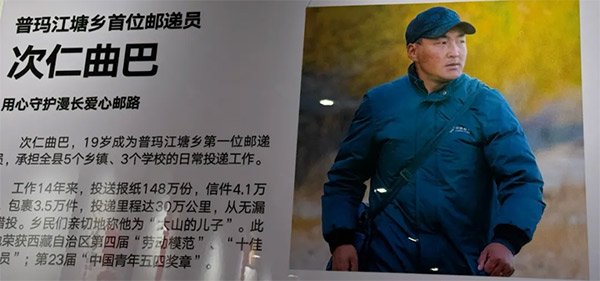 離開普瑪江塘前,普瑪江塘鄉(xiāng)黨委副書記、人大主席洛桑久乃熱情地邀請(qǐng)采訪組參觀位于鄉(xiāng)政府內(nèi)的邊境紅色教育基地。在普瑪江塘杰出人物展區(qū),記者一下就看到了次仁曲巴事跡的展板,2019年他榮獲了第23屆“中國青年五四獎(jiǎng)?wù)隆薄B迳>媚顺錆M感慨地說:“中國郵政和我們地方黨委、政府一樣,無論誰來誰走,都會(huì)永遠(yuǎn)堅(jiān)守在這高寒的邊境線上。鄉(xiāng)親們需要我們,國家需要我們!”