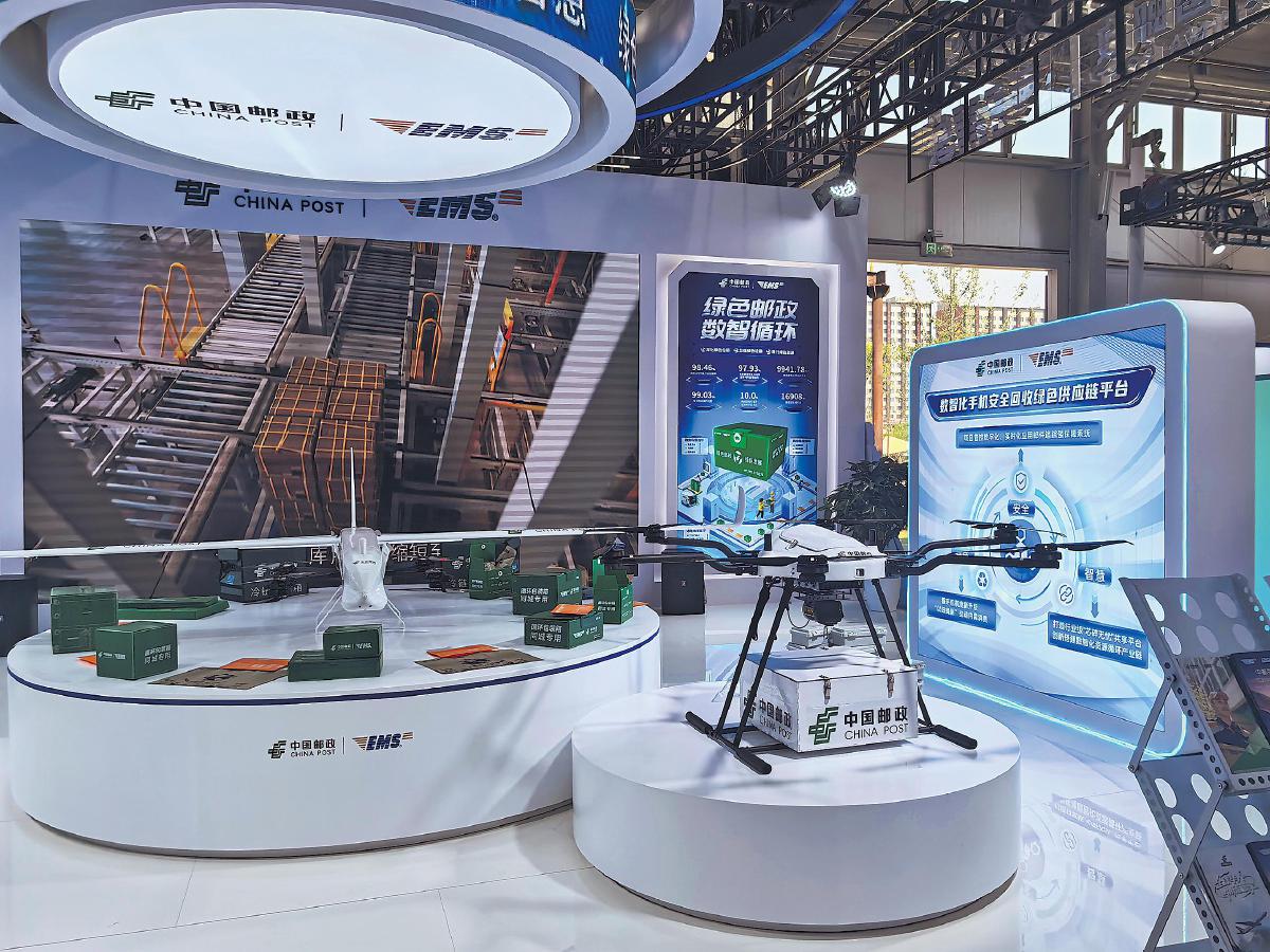 走進(jìn)供應(yīng)鏈及商務(wù)服務(wù)展區(qū),中國(guó)郵政速遞物流股份有限公司(以下簡(jiǎn)稱“中國(guó)郵政速遞物流”)展位上的UX25六旋翼無(wú)人機(jī)和E6A純電動(dòng)垂直起降固定翼無(wú)人機(jī)首先映入眼簾。來(lái)自中國(guó)外文局的唐女士和友人在展臺(tái)前駐足良久,她仔細(xì)觀看UX25六旋翼無(wú)人機(jī)和E6A純電動(dòng)垂直起降固定翼無(wú)人機(jī)的演示。“郵政的無(wú)人機(jī)太驚艷了!”她贊嘆道,“之前關(guān)注到無(wú)人機(jī)在多個(gè)領(lǐng)域廣泛應(yīng)用,沒(méi)想到在物流領(lǐng)域也如此普及。這種技術(shù)創(chuàng)新真令人驚喜?!闭刮簧系闹v解員介紹:“去年,中國(guó)郵政成立了無(wú)人機(jī)公司,通過(guò)無(wú)人機(jī)、無(wú)人車、無(wú)人倉(cāng)等無(wú)人設(shè)備,為廣大用戶提供智慧物流服務(wù),推動(dòng)低空物流規(guī)?;\(yùn)營(yíng)?!?/p>