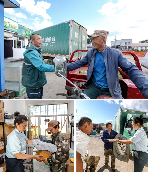 2015年,本報(bào)“邊疆郵路行”采訪組曾來到饒河縣五林洞鎮(zhèn)采訪,看到了這里的投遞員騎著28型永久牌自行車去村里投遞。十年后的今天,采訪組再次來到這里,昔日的五林洞郵政支局現(xiàn)在是五林洞郵政所。投遞員劉超駕駛由縣郵件處理中心直發(fā)的環(huán)路郵車,沿途不僅會(huì)將郵件直投到村,還會(huì)把各村級(jí)站點(diǎn)內(nèi)村民要發(fā)出的農(nóng)產(chǎn)品帶上來,包裝后發(fā)出,這里也成為他投遞線路上的最后一站。
