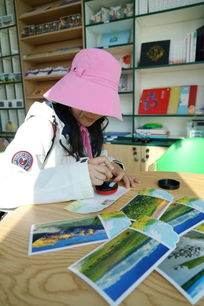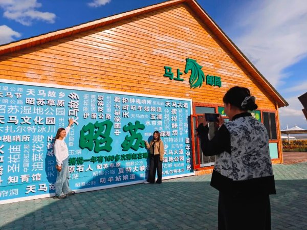 廣東省梅州市游客李女士說:“‘馬上’郵局很有特色,還有一個網(wǎng)紅墻可以拍照,隨意凹造型。平時我也會去景點購買明信片、冰箱貼當做伴手禮,我要把我手里的明信片郵寄給朋友。”