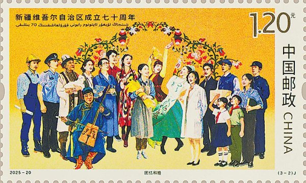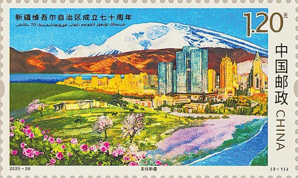 《新疆維吾爾自治區(qū)成立七十周年》紀念郵票將于9月21日發(fā)行。該套郵票1套3枚,郵票圖案名稱分別為:美麗新疆、團結和睦、開放高地。