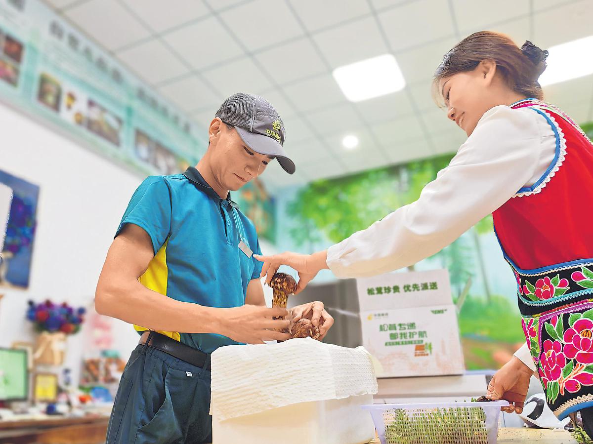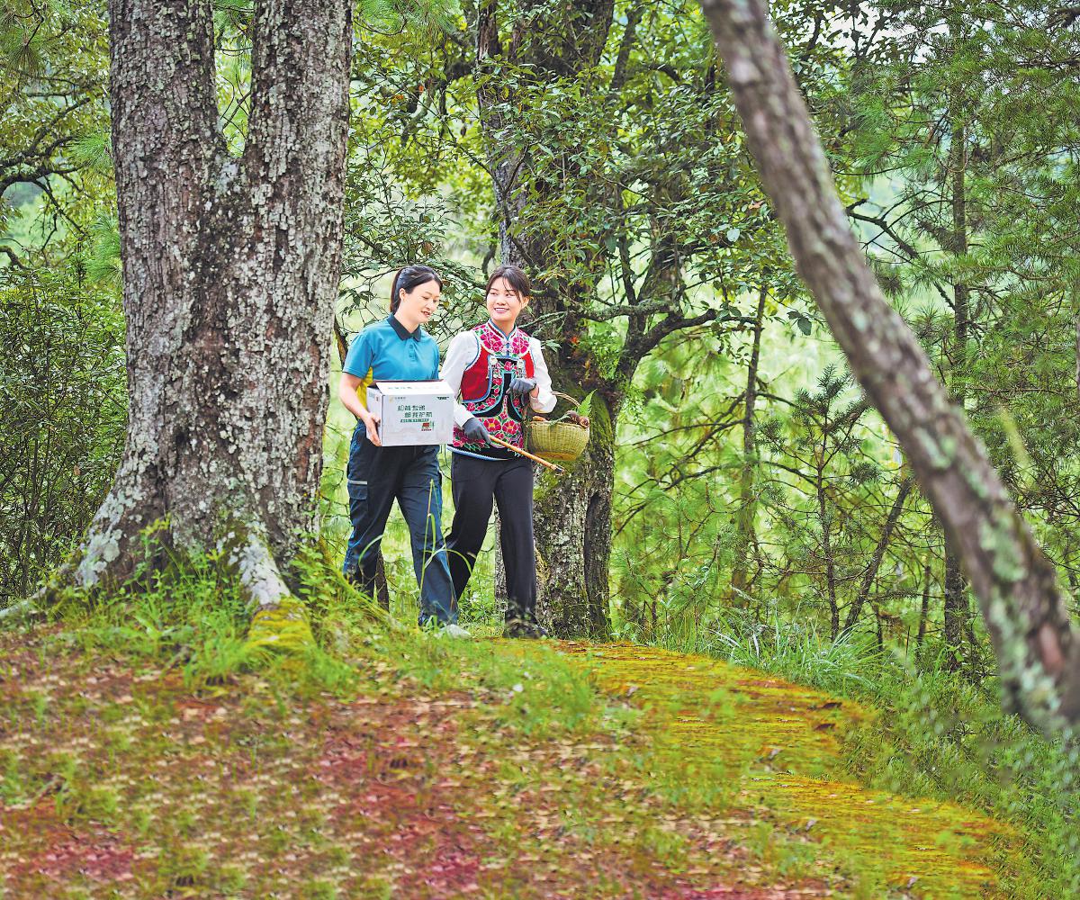 9月17日清晨,楚雄州南華縣郵政分公司員工隨菌農(nóng)上山采摘松茸,實現(xiàn)林下至郵路無縫銜接。