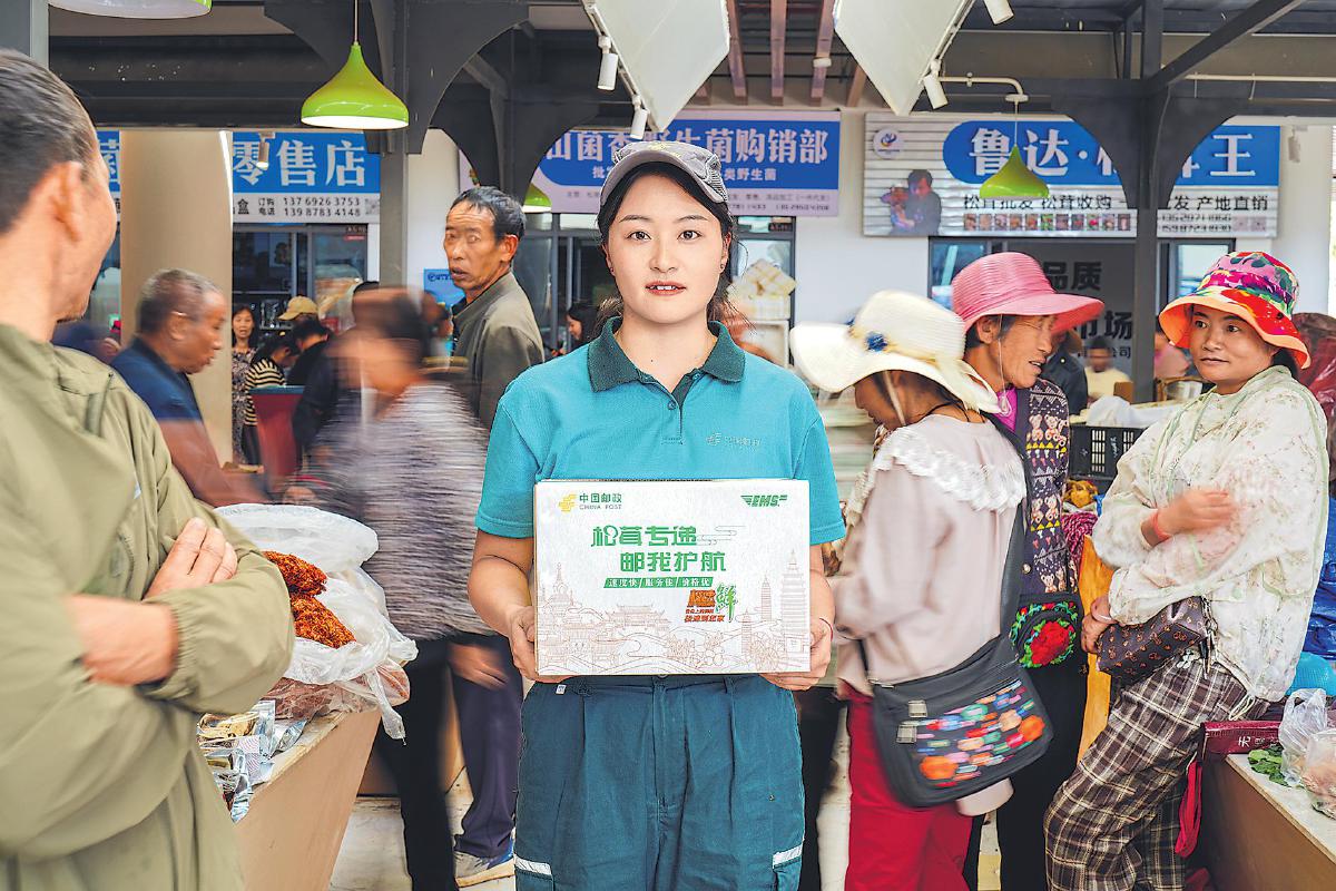 郵政員工將新采摘的松茸第一時間轉(zhuǎn)運下山。