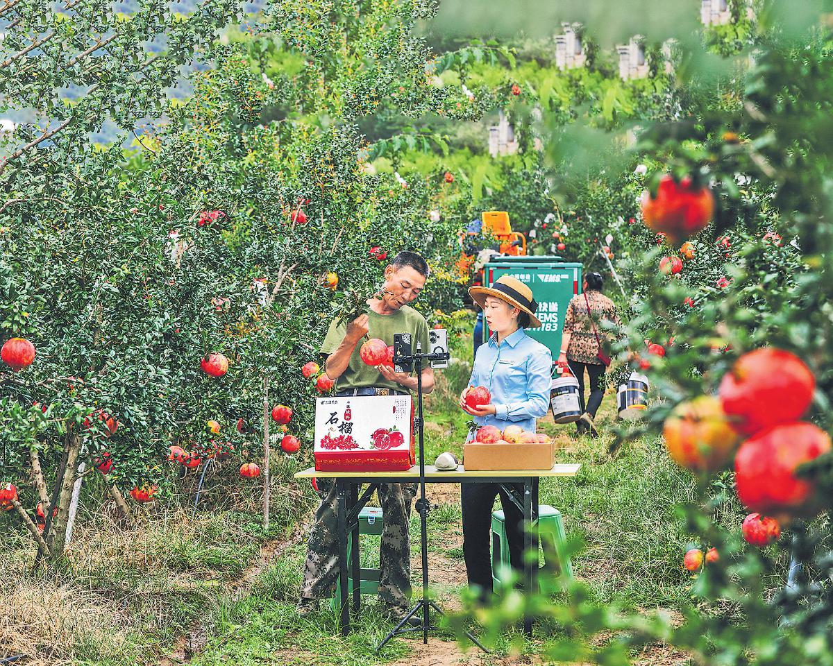 9月18日,麗江市永勝縣郵政分公司直播團(tuán)隊把直播間搬進(jìn)石榴園,現(xiàn)場推介國家地理標(biāo)志產(chǎn)品軟籽石榴。