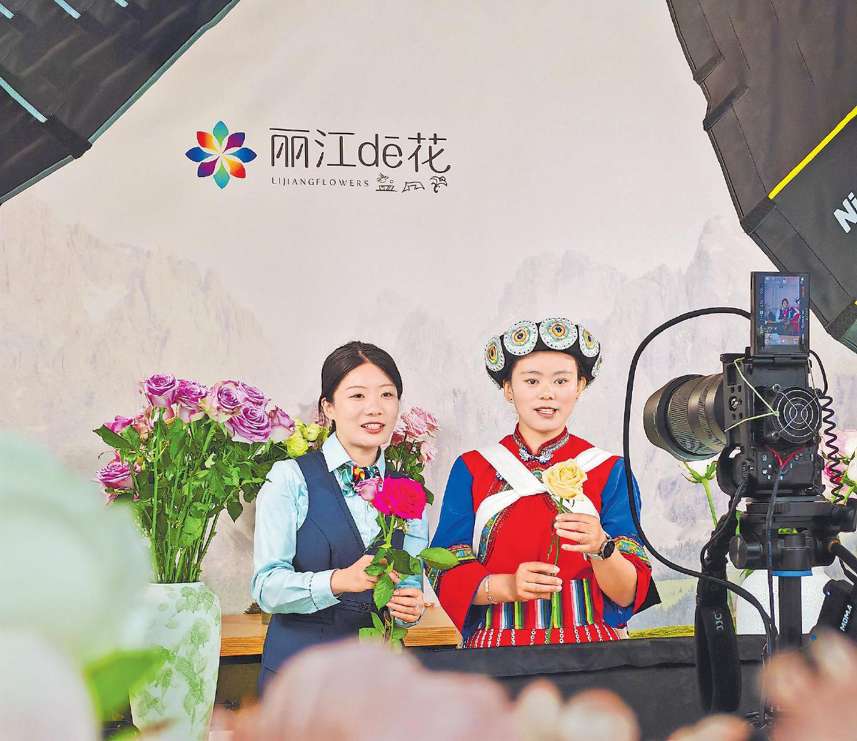 郵政主播與園區(qū)花農(nóng)同框直播,手機(jī)屏幕內(nèi)外同步“帶花”,線上訂單實時滾動,流量變銷量。