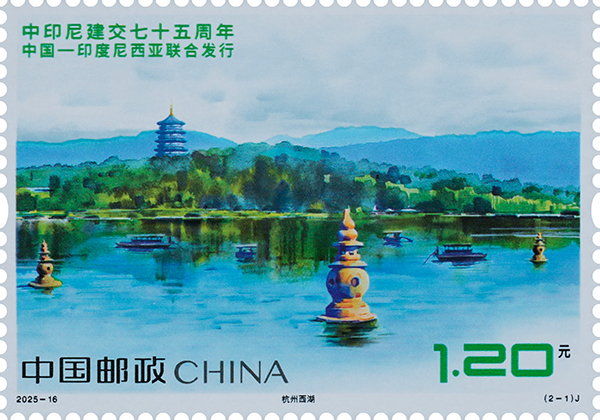 中國郵政定于2025年8月30日發(fā)行《中印尼建交七十五周年》(與印度尼西亞聯(lián)合發(fā)行)紀念郵票1套2枚,郵票圖案名稱為:杭州西湖、布拉坦湖。全套郵票面值2.40元,計劃發(fā)行數(shù)量450萬套。